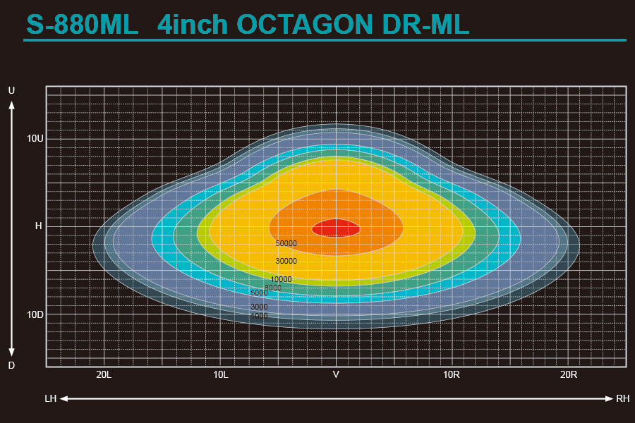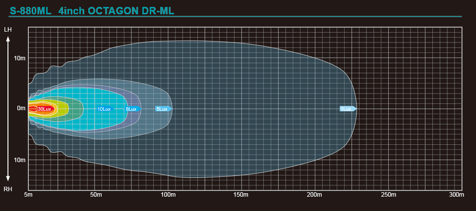 超高輝度LEDx4個搭載。リフレクター方式による「スポット」と「ドライビング」を備える「ハイブリッド照射(COMBO)タイプ」。ワイド方向のドライビングに重点を置いた配光+スポットの遠方照射でクリアな視界を確保。