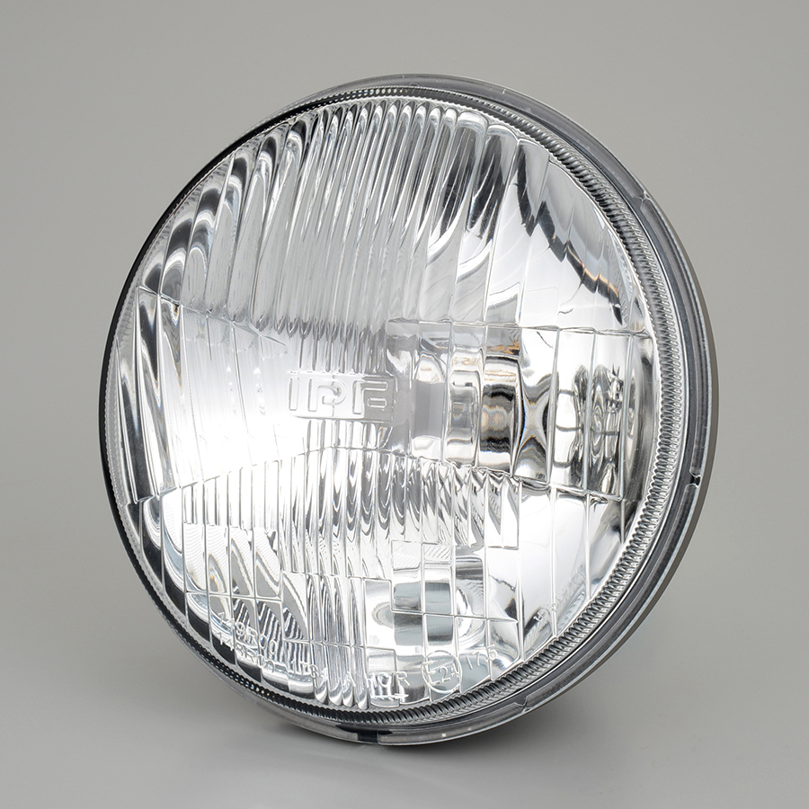 Eマーク取得済 & ロービーム車検対応のクラシカルなハロゲン・ガラスレンズカット・ヘッドランプ。