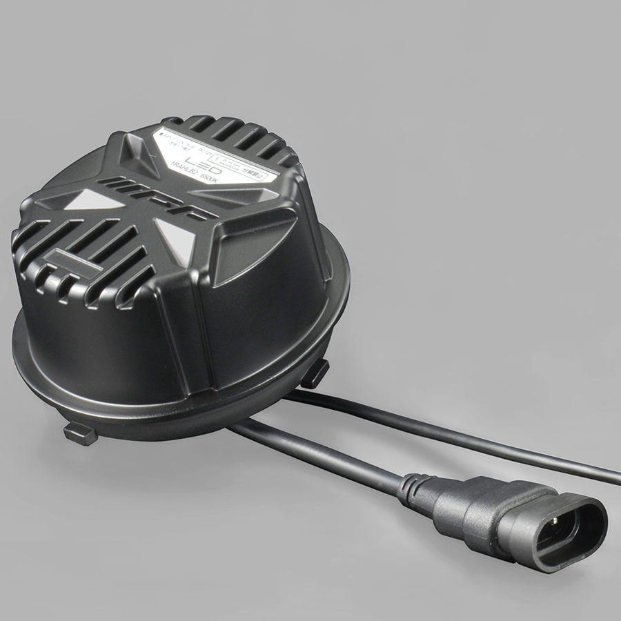 ドライバーユニットと高い放熱性能を備える高熱伝導アルミニウムダイカスト合金製・防水カバーを一体化。純正バルブと防水カバーを交換するのみで簡単にハロゲン→LEDヘッドランプ化が可能になりました。