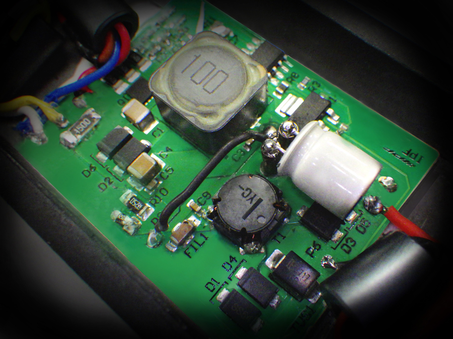 高い信頼性、低ノイズを実現するため、X3シリーズではSEPIC*1方式のドライバー回路を採用。国内メーカー製のハイブリッドコンデンサや3端子フィルタ、コモンモードチョークコイルなどを搭載。