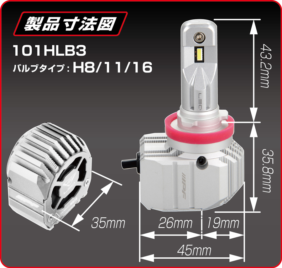 ■ 「H8/11/16共通(品番:101HLB3)」「HB3/4・HIR2共通(品番:151HLB3)」