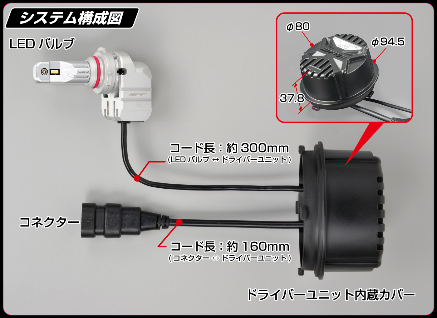 定電流ドライバーユニット採用。 12V車/24V車共通で装着可能!