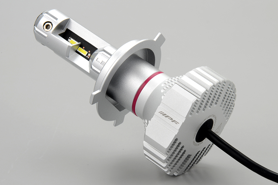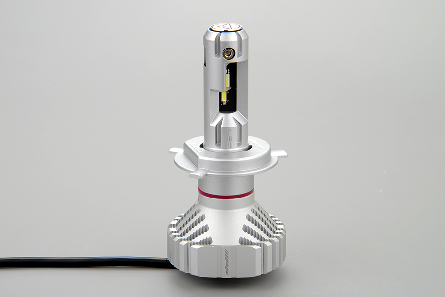 ヘッドランプ後方スペースの狭い車に最適なドライバーユニット別体のセパレートタイプ。冷却ファンを無くし薄型化。熱を効率的に逃がすヒートシンク形状により明るさを犠牲にする事なく、静音性と放熱性を両立。(意匠登録出願済み)