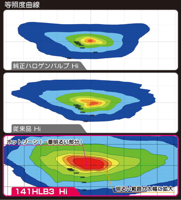 Hiビーム5000lm 、Loビームでは3000lmのハイパワーを実現するとともに、完璧とも言える配光性能を両立しています。