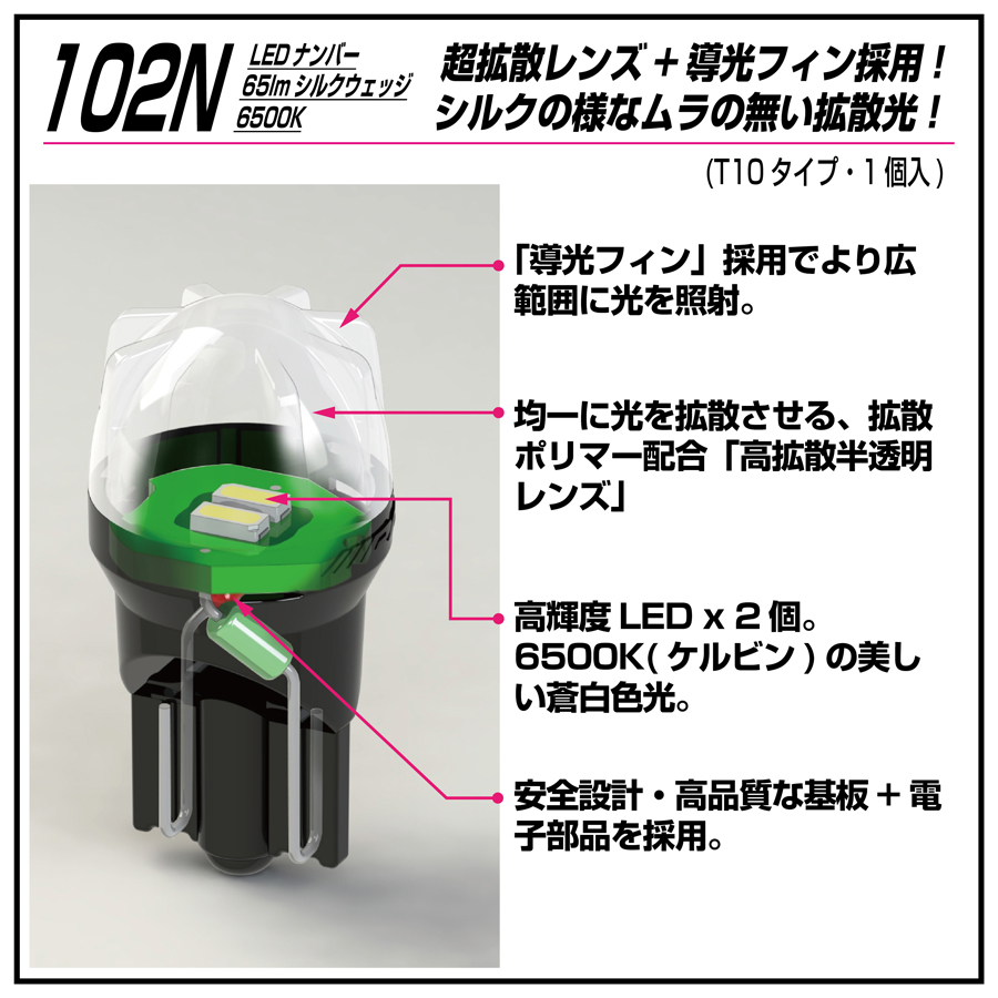 LEDナンバー 102N 65lmシルクウェッジ6500K