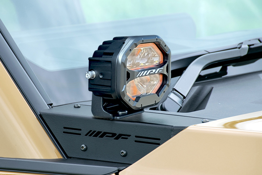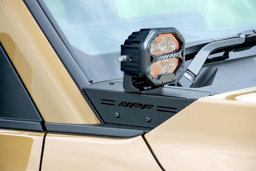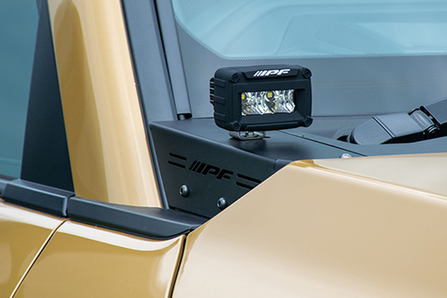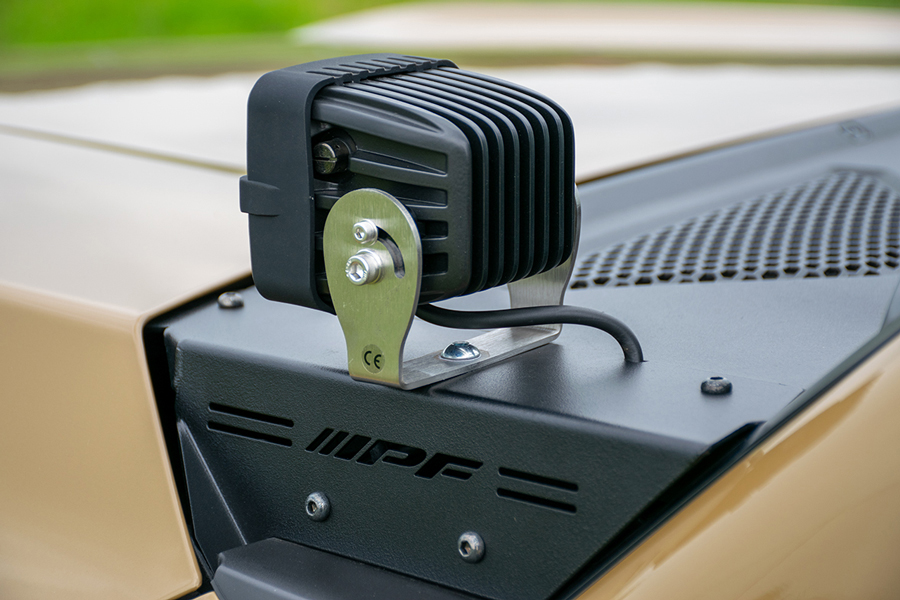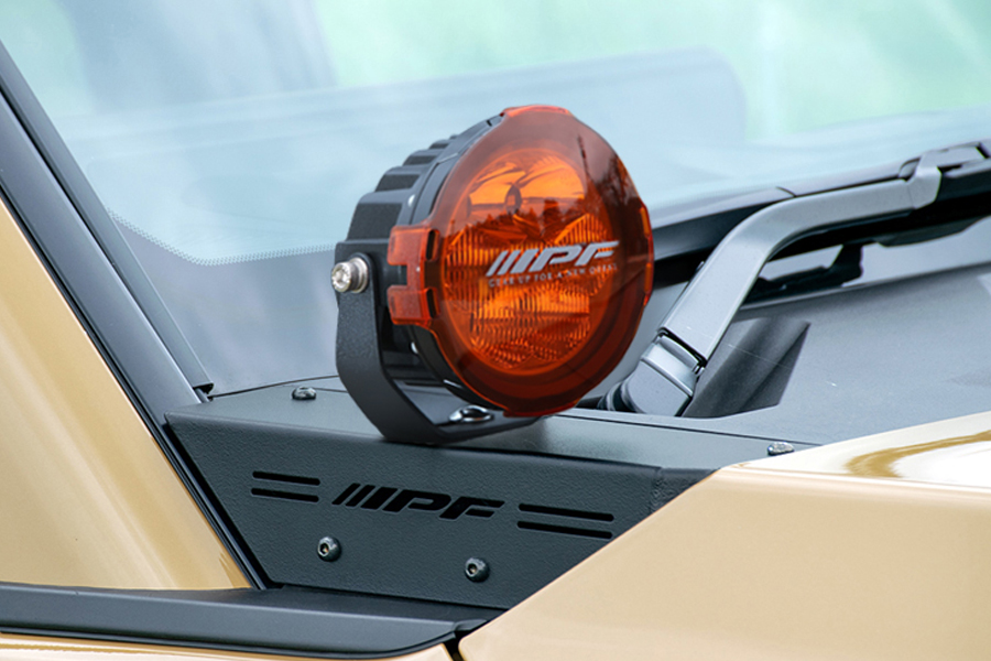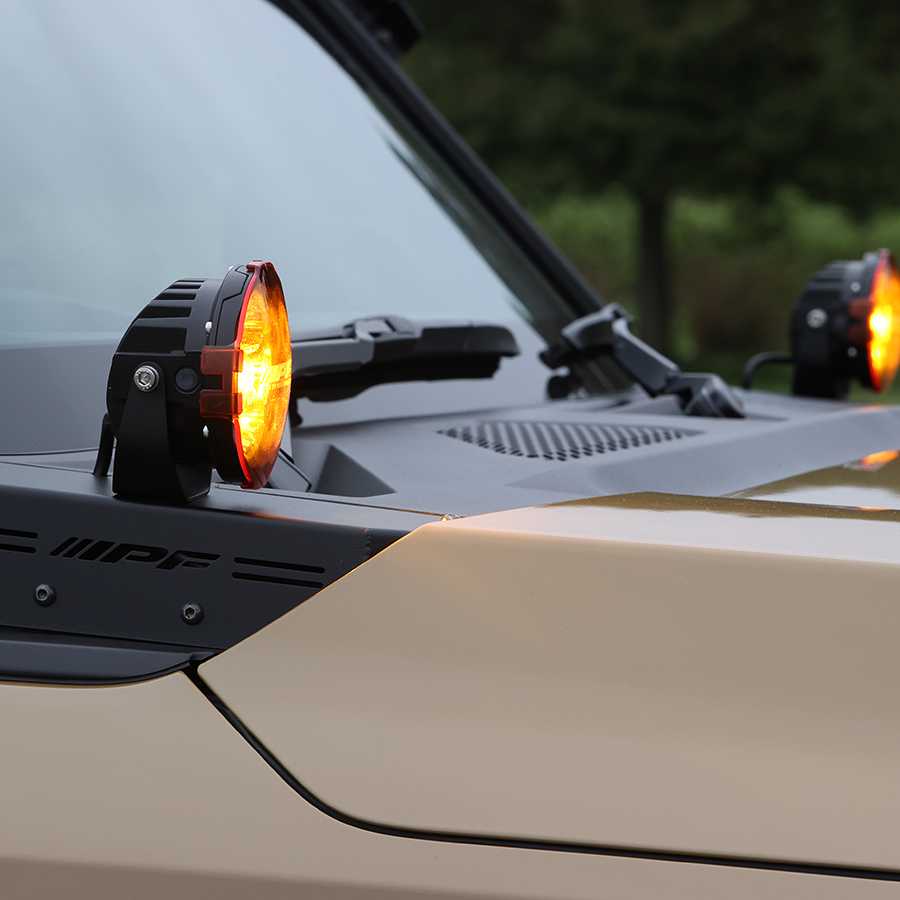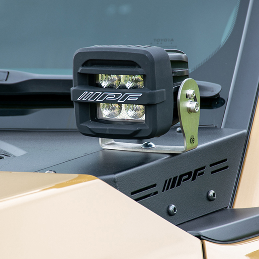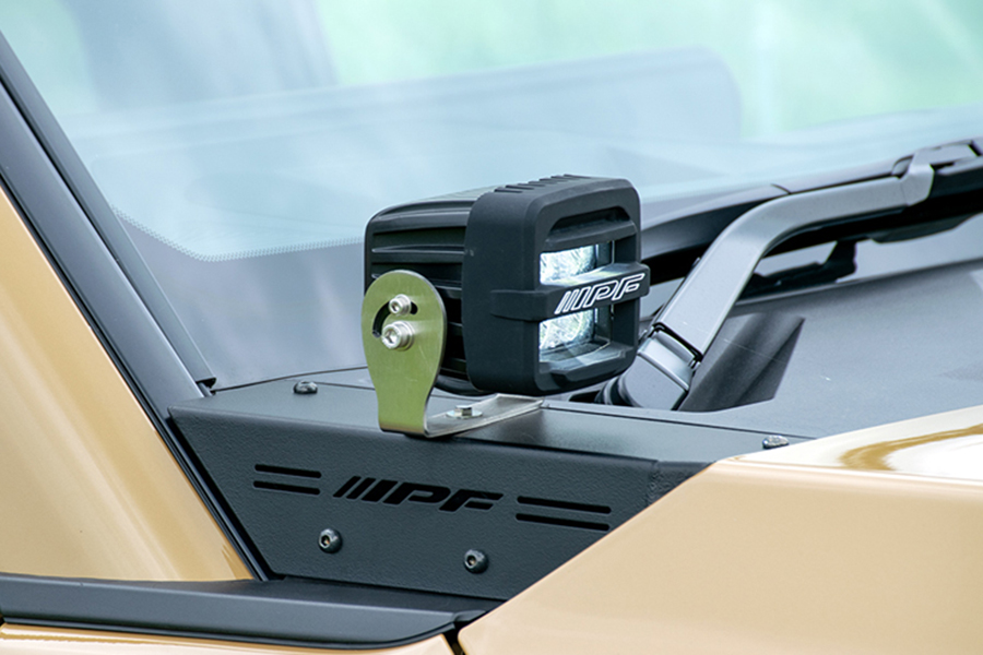 車両側無加工でIPF製オフロード®ランプ(S-631,S-632,S-990,S-880ML)をボンネット上端部へスマートに装着が可能。注意:本製品はIPF製S-631,S-632,S-880ML,S-990 専用設計となっております。他のランプは取付けないでください。
